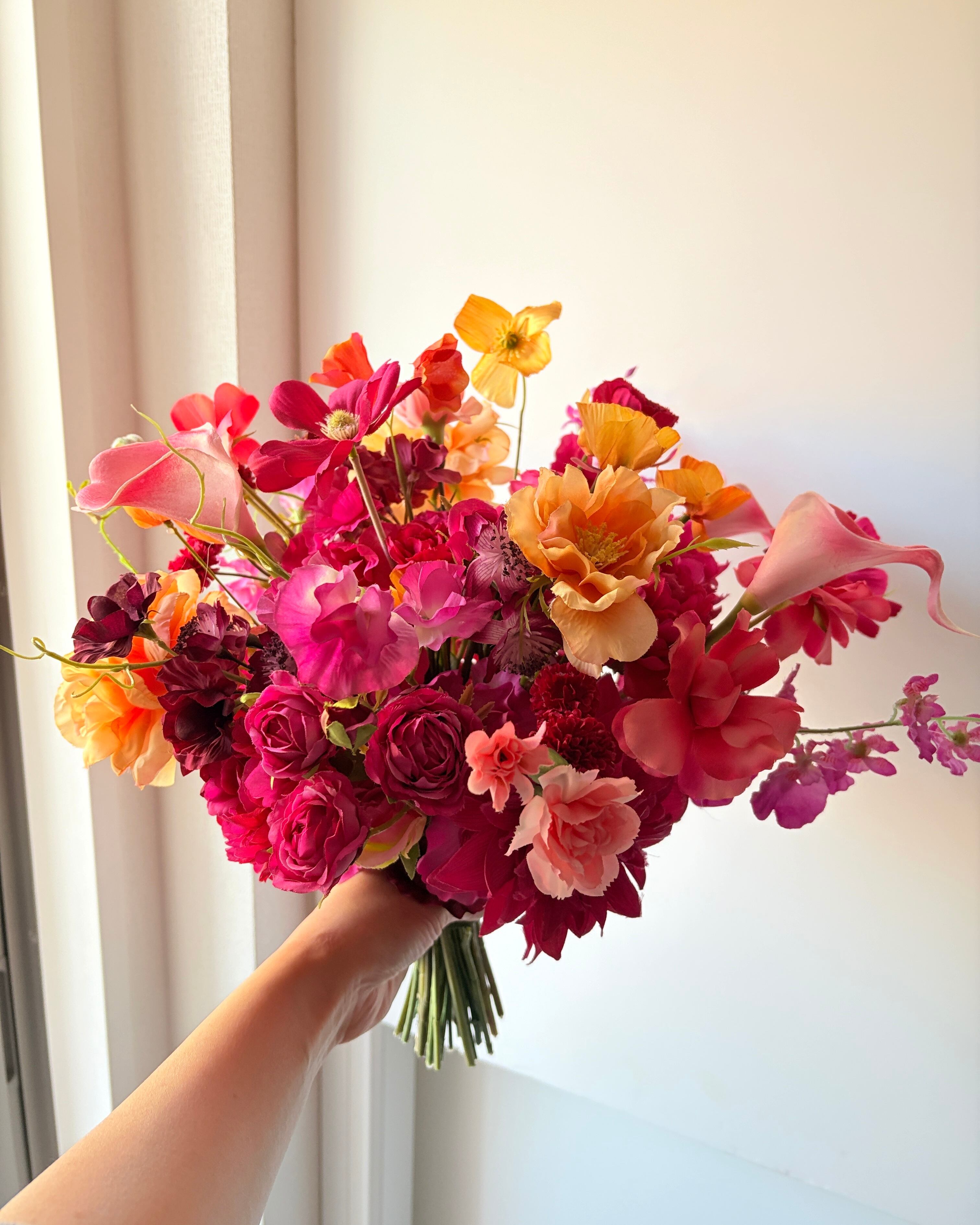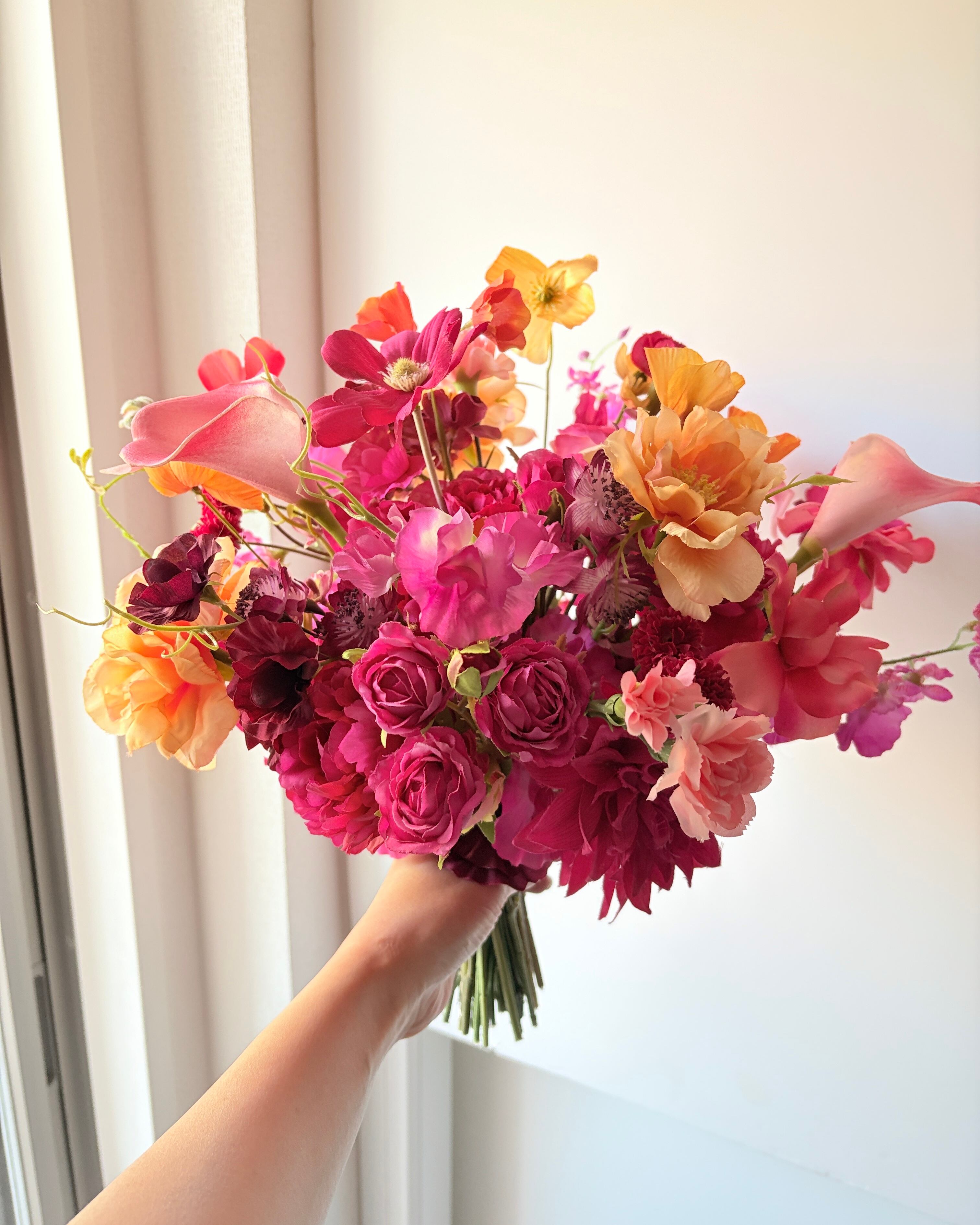 ○使用花材: カラーリリィ、ローズ、スイートピー、ダリア、オンシジューム、小花など